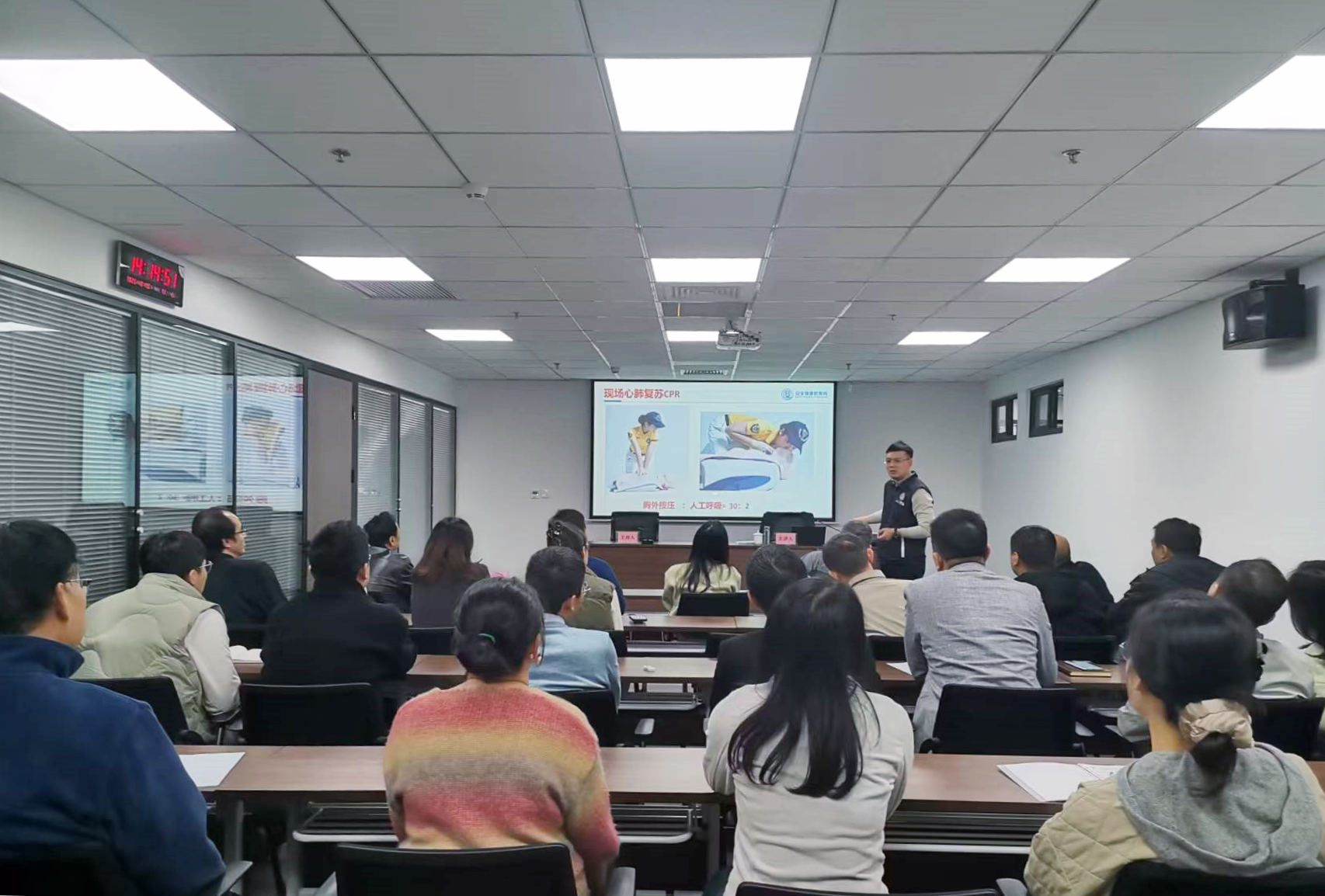講座邀請到了安全健康教育網陜西站教科主任張肅毅授課。講師結合真實案例,從職工實際需求出發,聚焦應急救護、職業病防護、職場心理健康三大核心模塊分層講解。在應急救護方面,細致拆解心肺復蘇的操作要點,幫助大家真正掌握關鍵施救技巧;結合伏案工作特性,量身定制“正確坐姿+定時拉伸+規律運動” 的防護組合策略;針對工作生活中易發的負面情緒,傳授識別、疏導實用技巧,引導大家以積極心態應對挑戰。